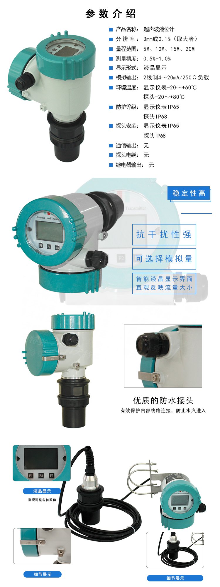 3. 超聲波液位計(jì):采用超聲波測(cè)距原理,適合非接觸式測(cè)量高溫液體,但需注意蒸汽對(duì)測(cè)量的影響。